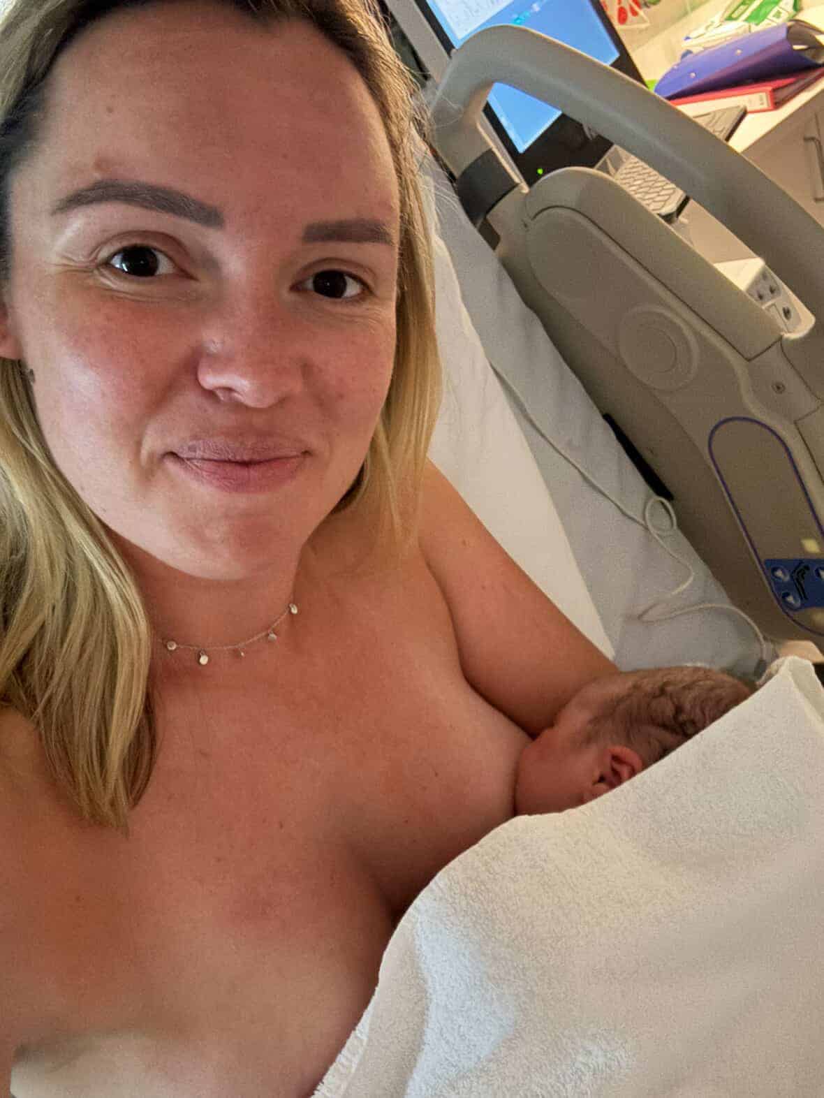 “I went into recovery and he went straight on the boob which was insane, he knew exactly what to do, just crawled to it and he hasn’t left the boob since. I’d hired a lactation consultant a few hours before birth and she taught me about antenatal expressing and she talked about what those first few days of breastfeeding would look like.
